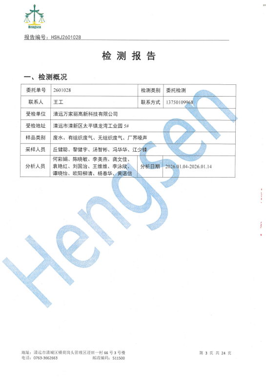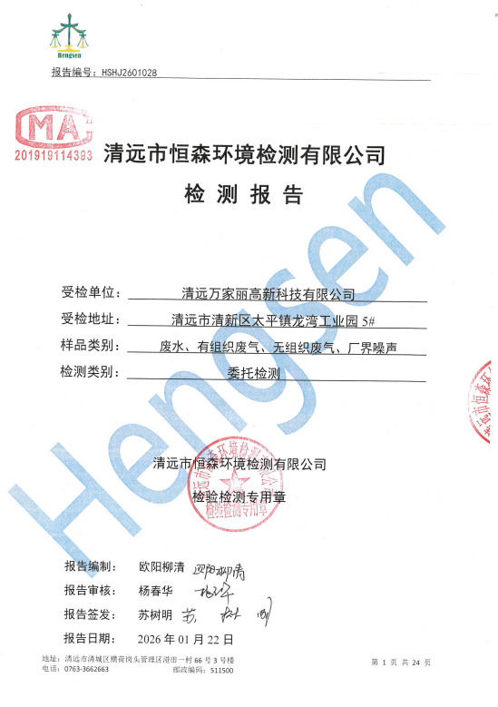 [下一篇] 清远万家丽高新科技有限公司2026年2月份废水、废气、噪声检测报告