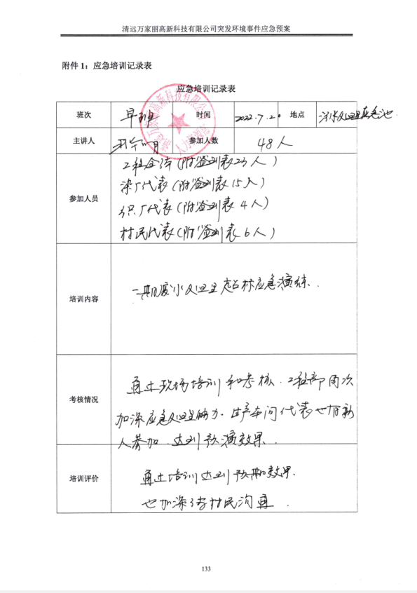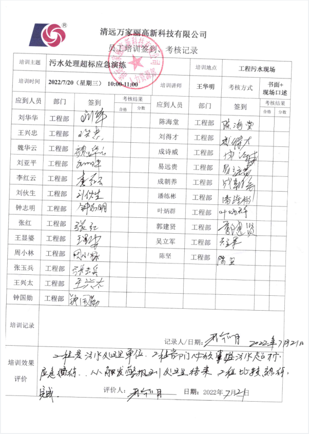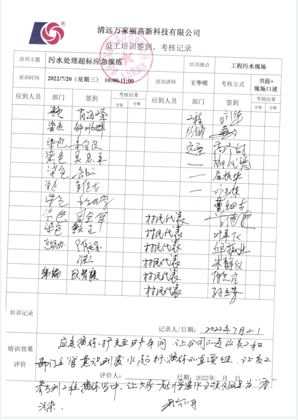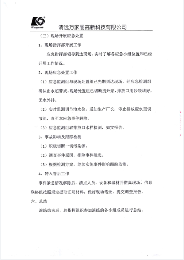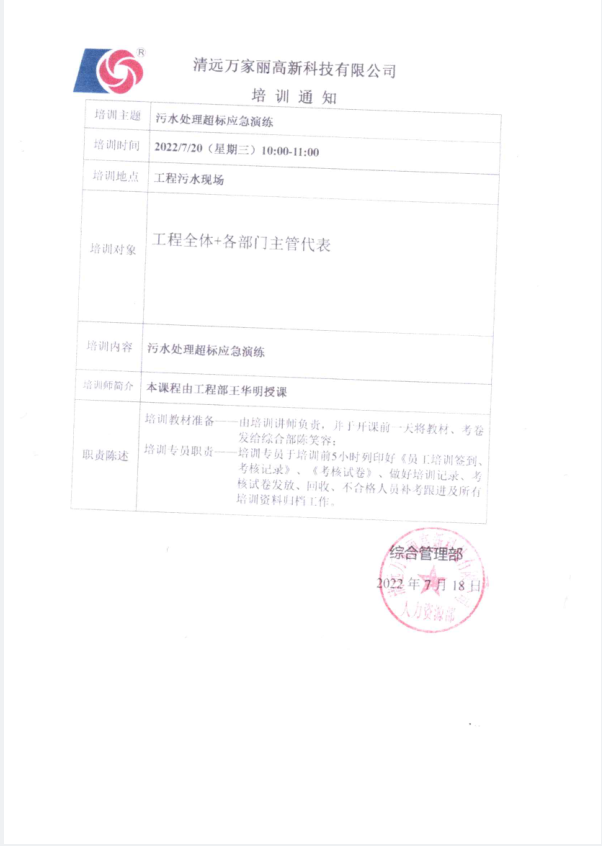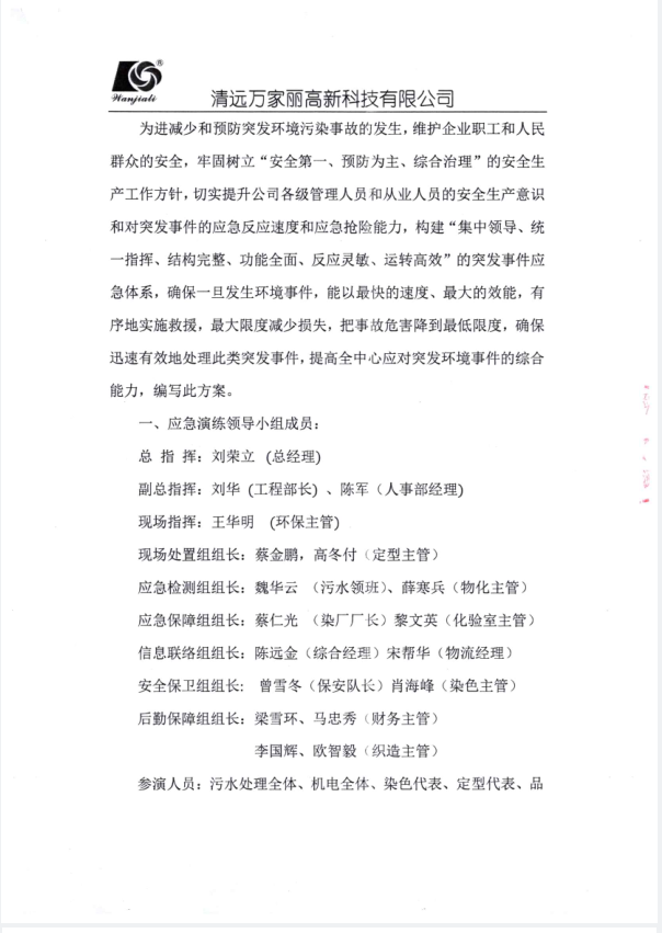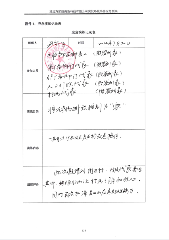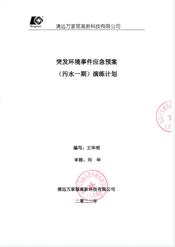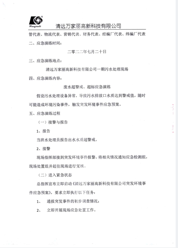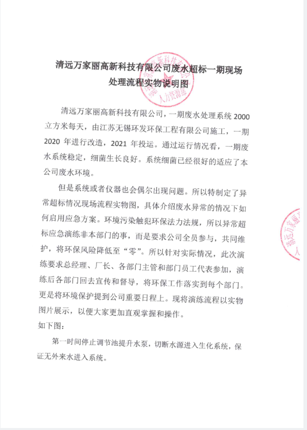 清远万家丽高新科技有限公司2022年度废水超标应急演练