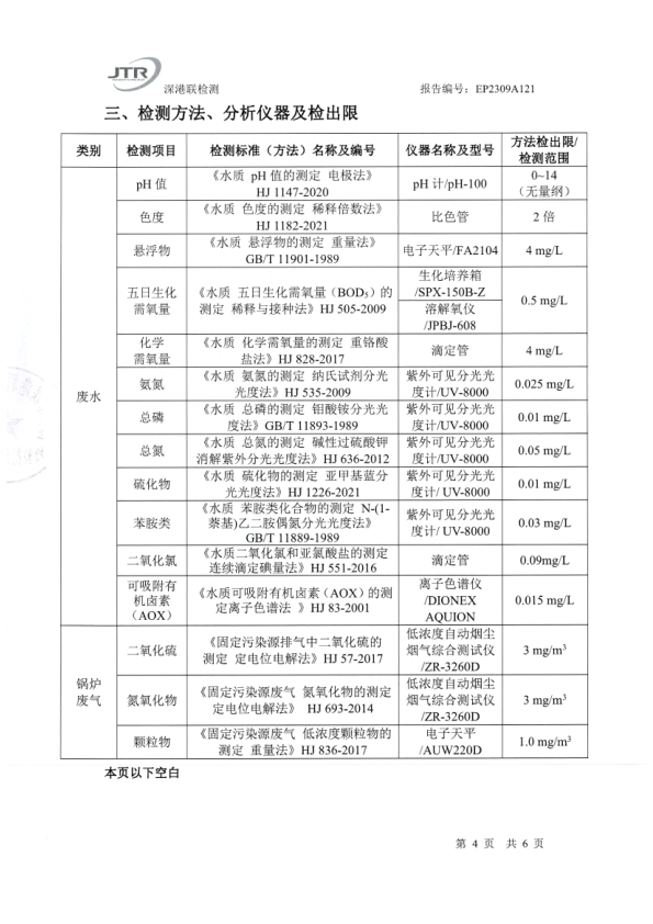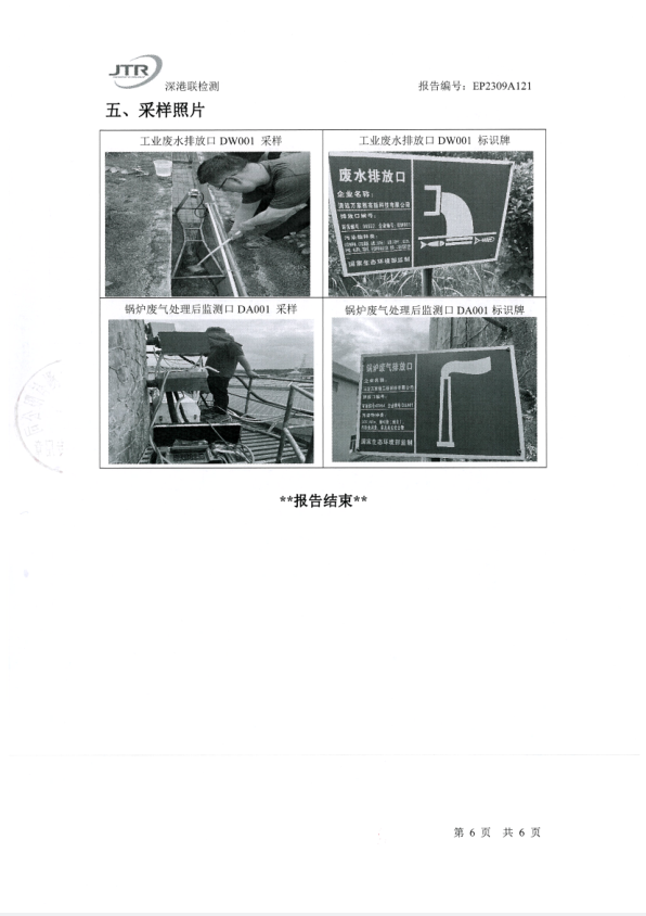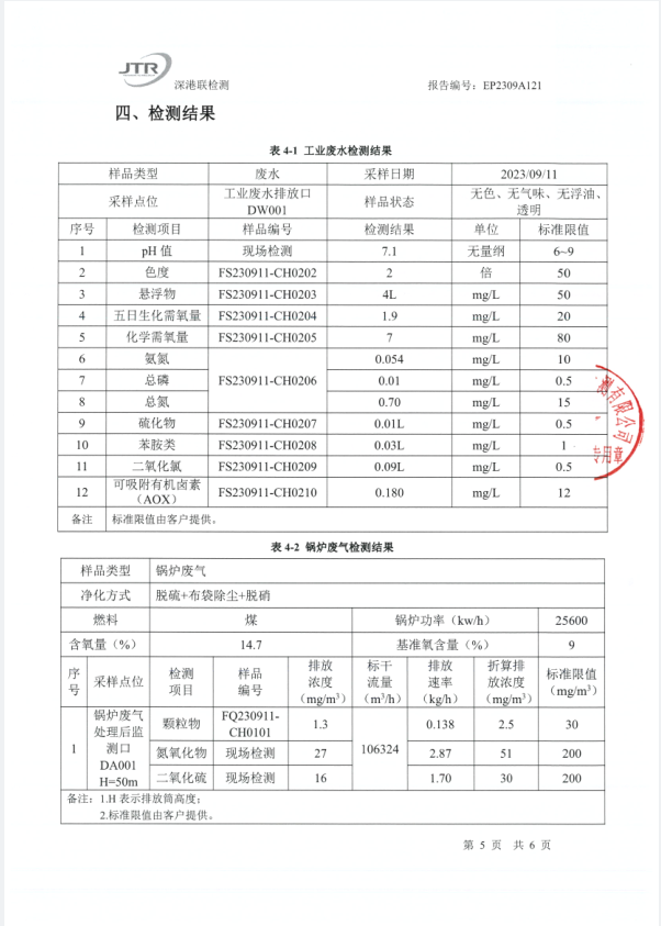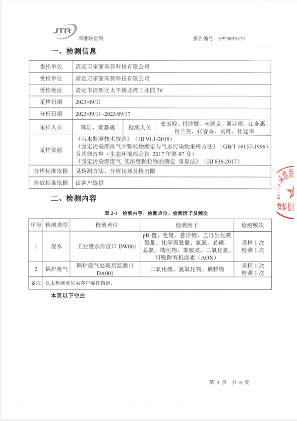 清远万家丽高新科技有限公司2023年9月份废水、锅炉废气监测报告