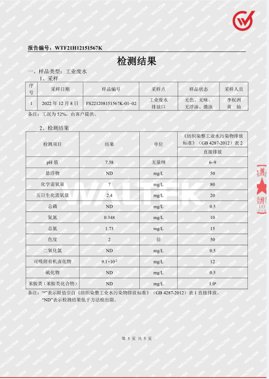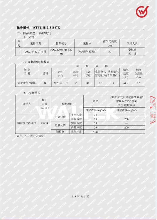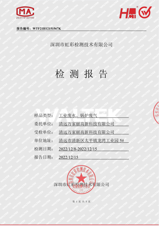 清远万家丽高新科技有限公司2022年12月份废水、锅炉废气监测报告