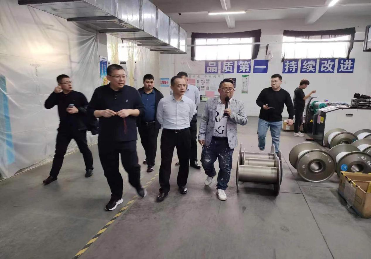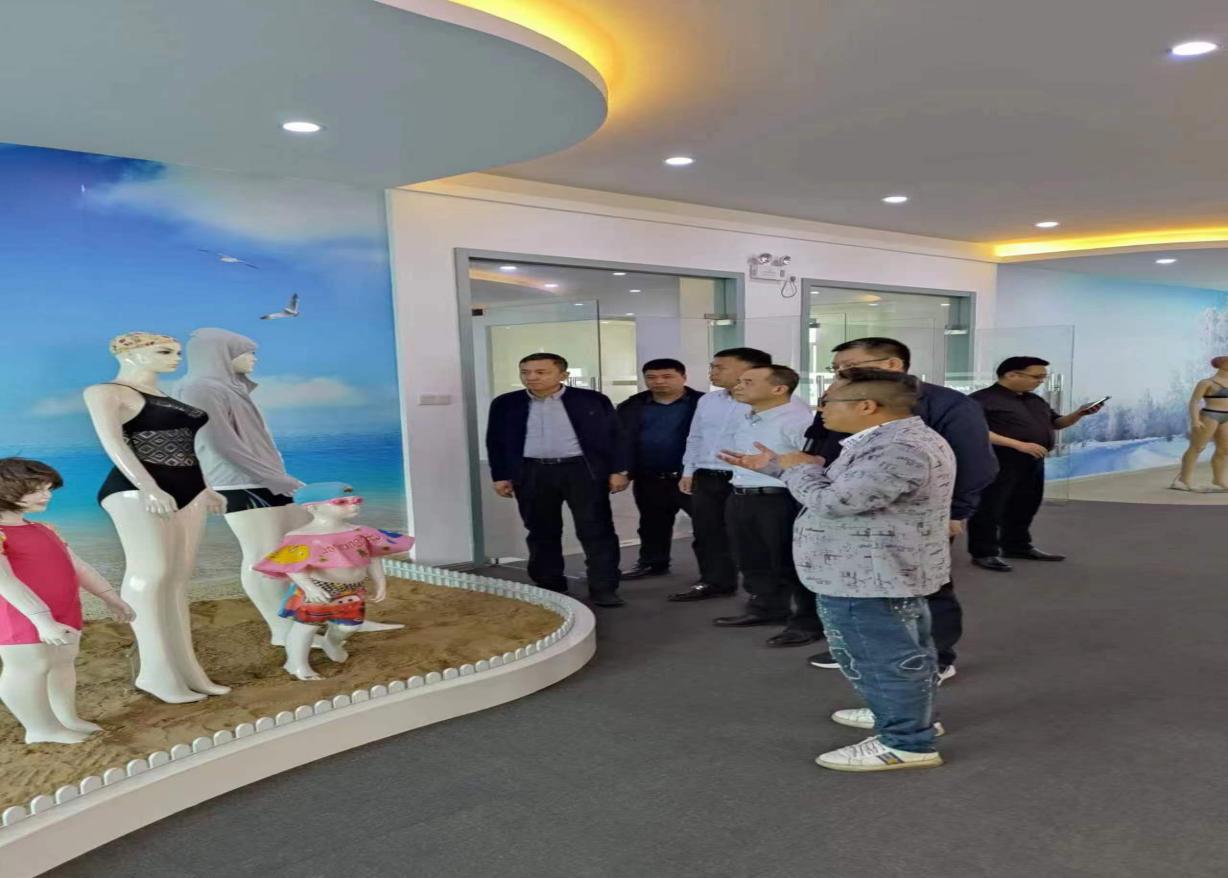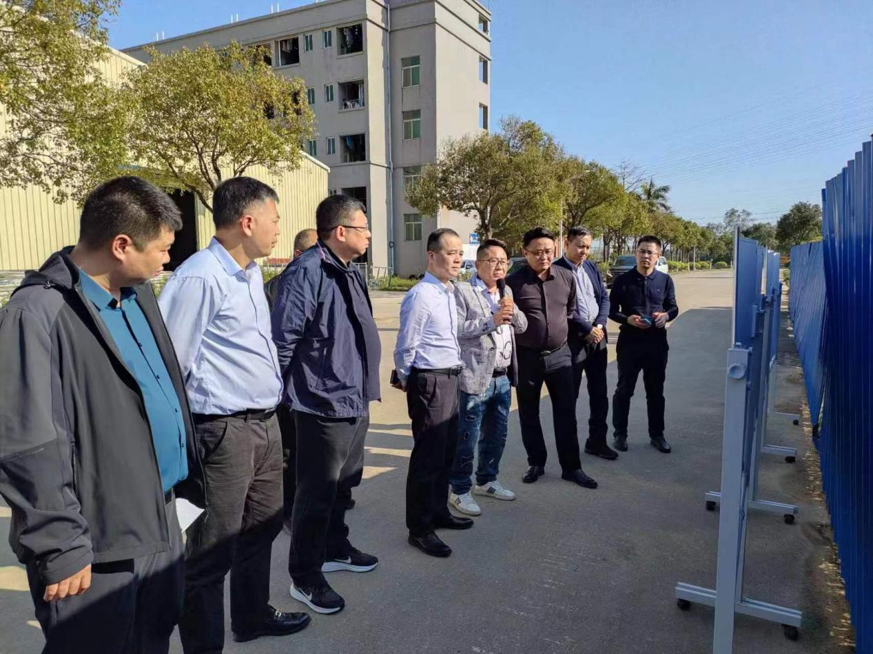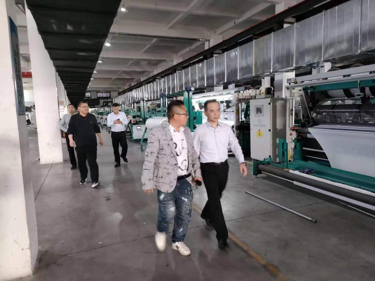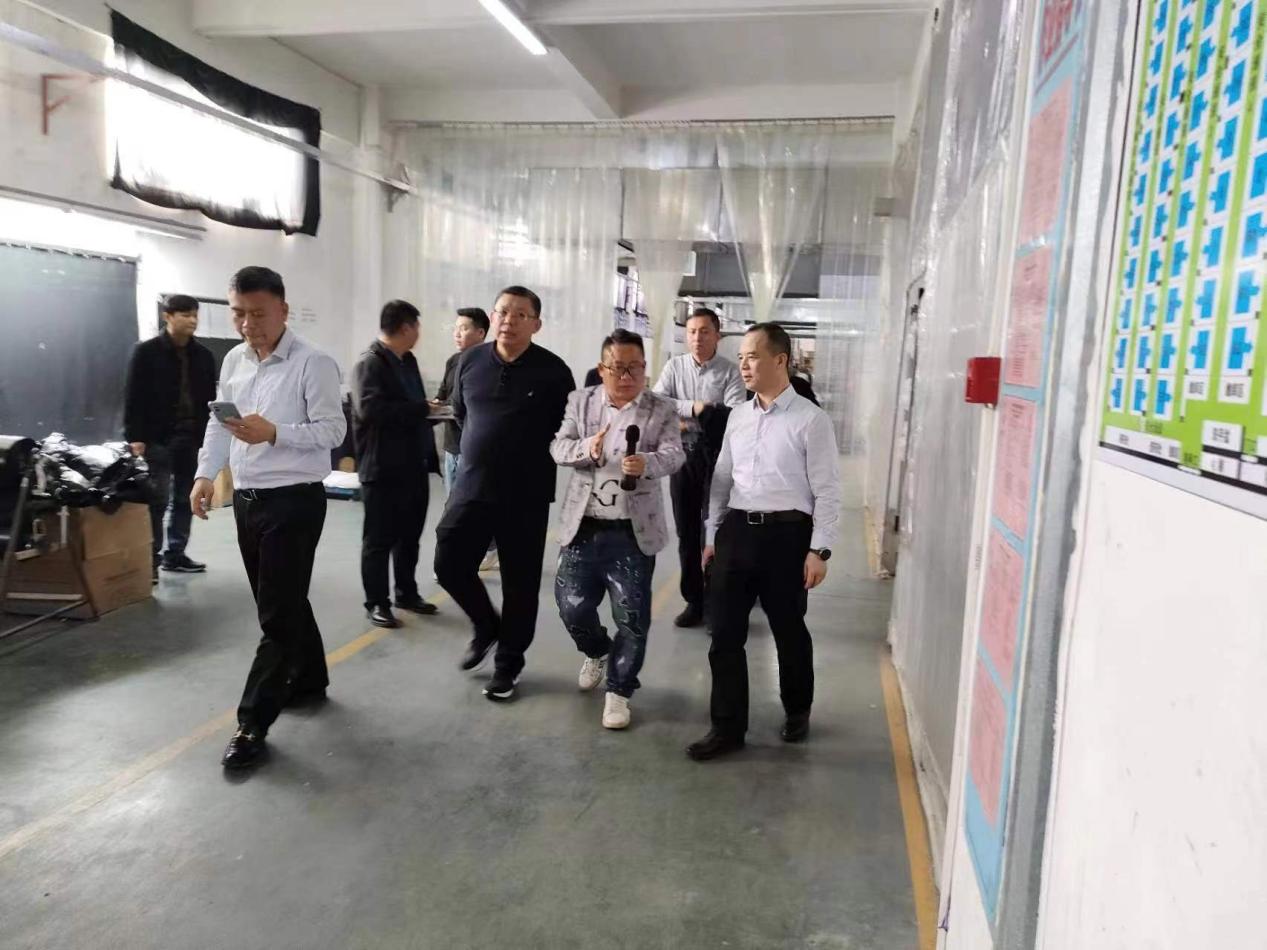 记中国纺织工业联合会信息化部主任殷强、湖南省祁阳市高新区书记李政及清远市经济开发区副主任黄远金等一行到访清远万家丽高新科技有限公司进行调研