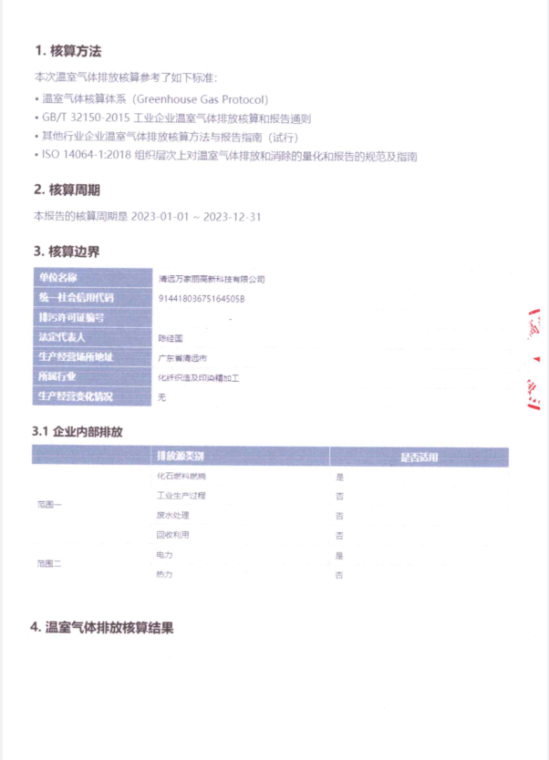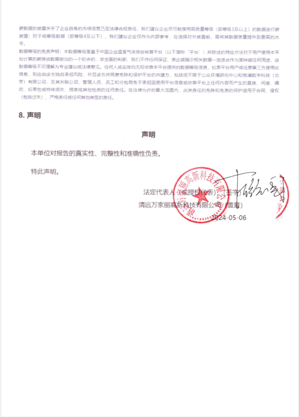 清远万家丽高新科技有限公司2023年度碳排放报告