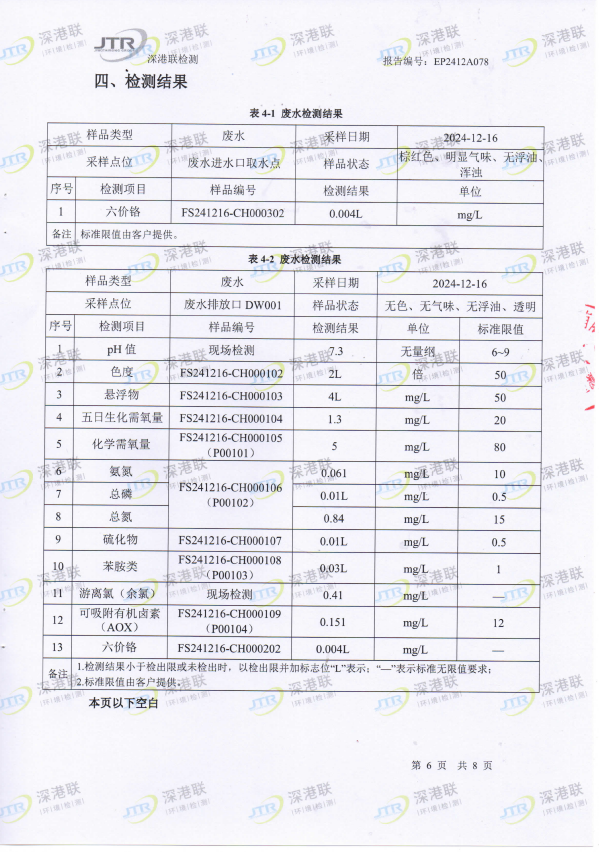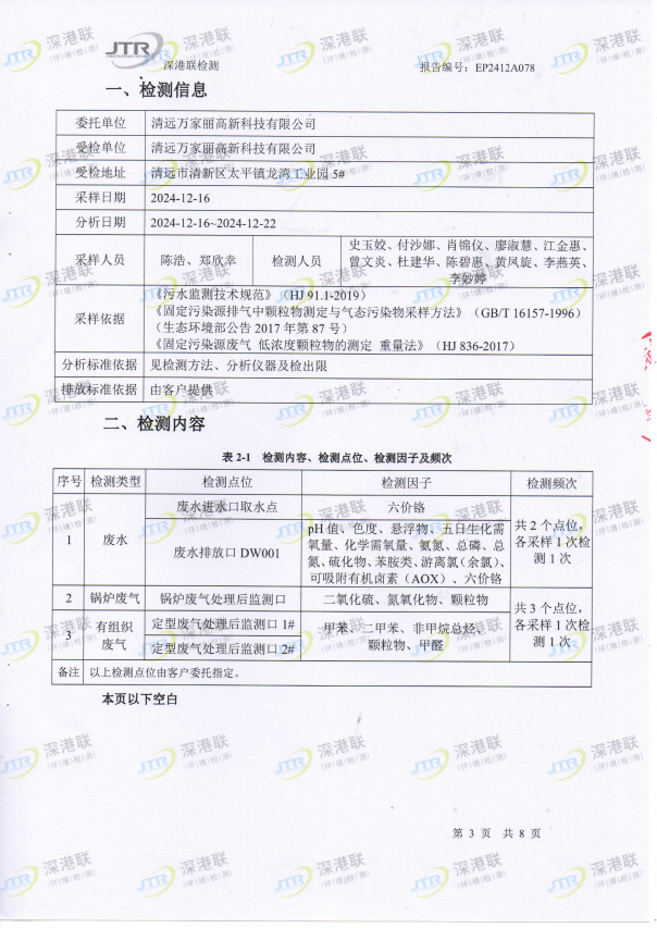 清远万家丽高新科技有限公司2024年12月份废水、废气、噪声检测报告