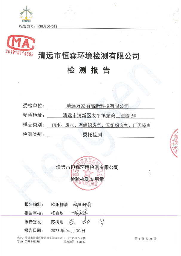 [上一篇] 清远万家丽高新科技有限公司2025年3月份废水、废气、噪声检测报告