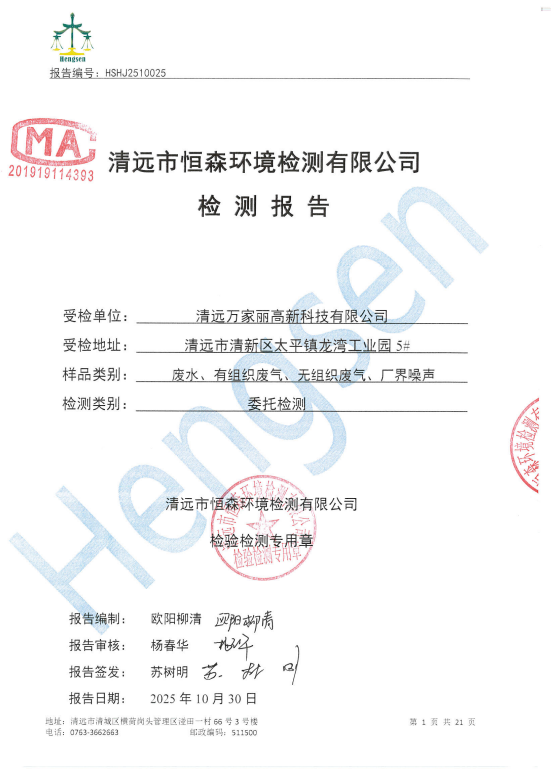 [下一篇] 清远万家丽高新科技有限公司2025年11月份废水、废气、噪声检测报告