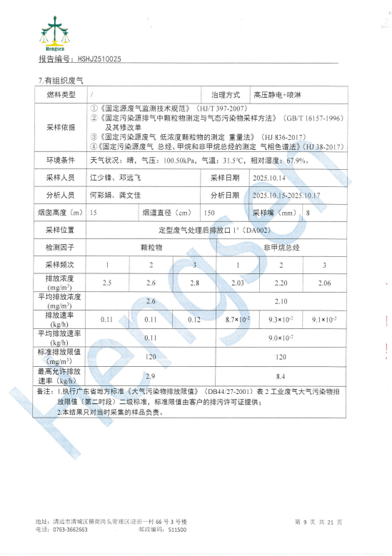[上一篇] 清远万家丽高新科技有限公司2025年9月份废水、废气、噪声检测报告