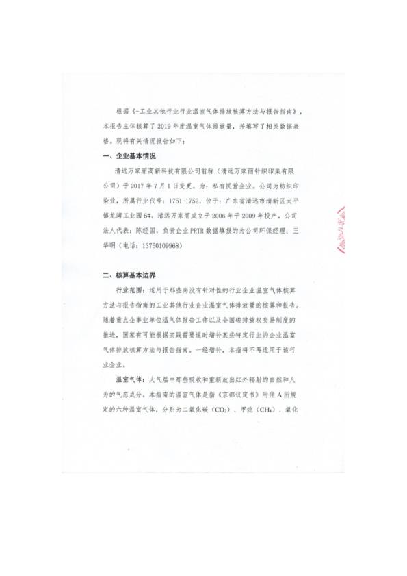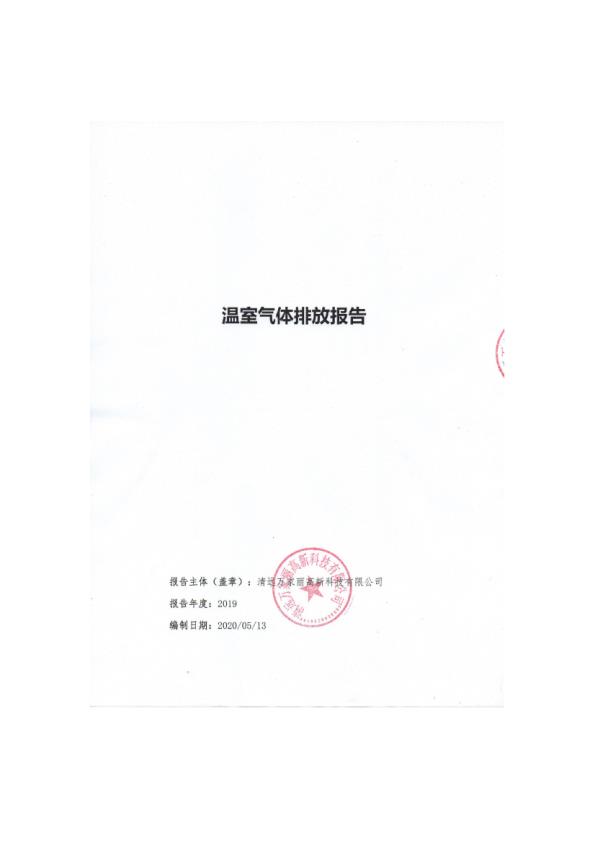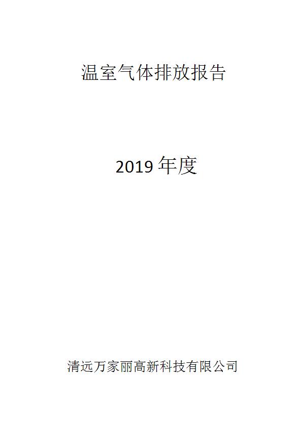 2019年度清远万家丽高新科技有限公司温室气体排放报告