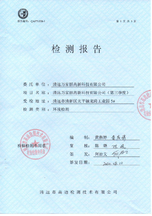 [下一篇] 清远万家丽高新科技有限公司2020年9月份废水监测报告