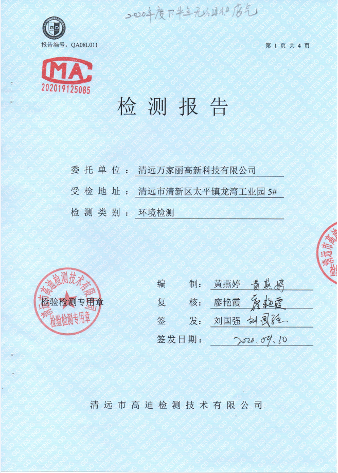 [下一篇] 清远万家丽高新科技有限公司2020年10月份废水、废气监测报告