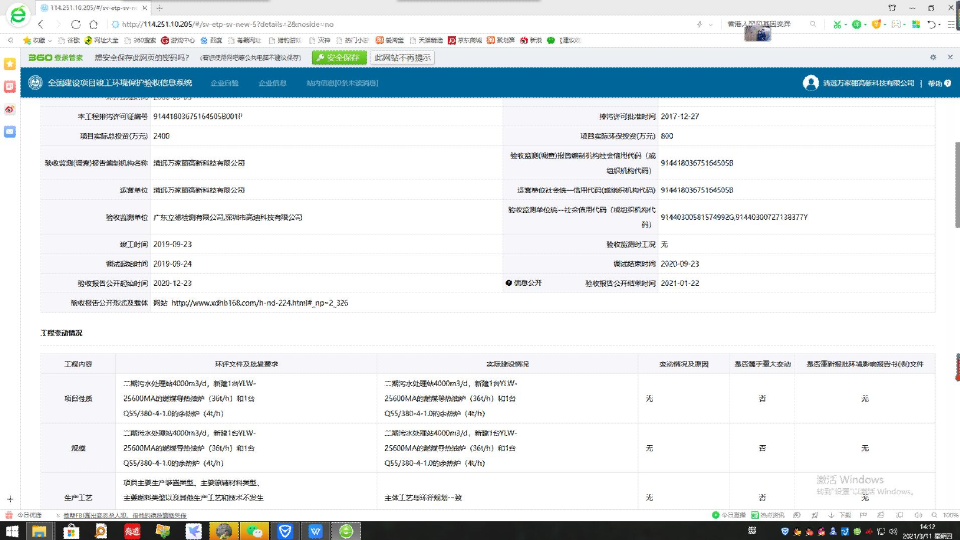 清远万家丽高新科技有限公司,二期污水处理4000m3/d,新建YLW-25600MA燃煤导热油炉配Q55/380-4-1.0余热炉(4t/h)企业自主验收于,2021年1月22日圆满结束在全国建设项目竣工环境保护验收系统公司时间