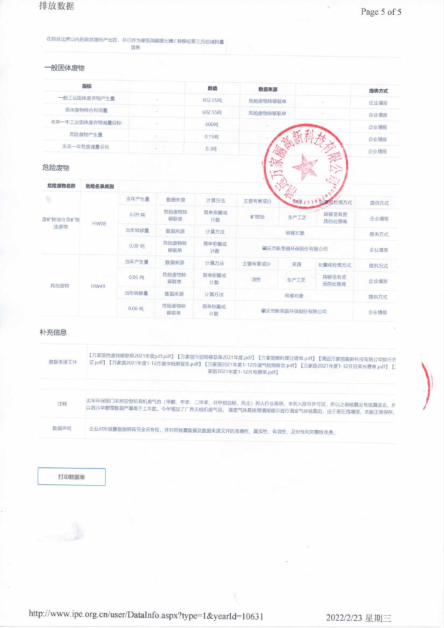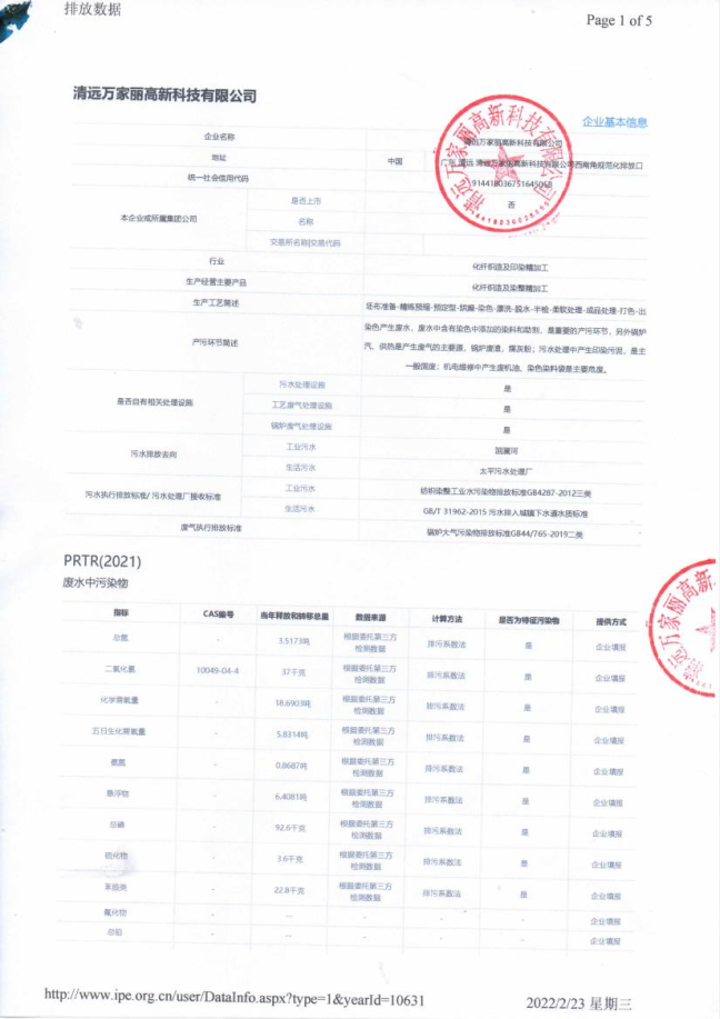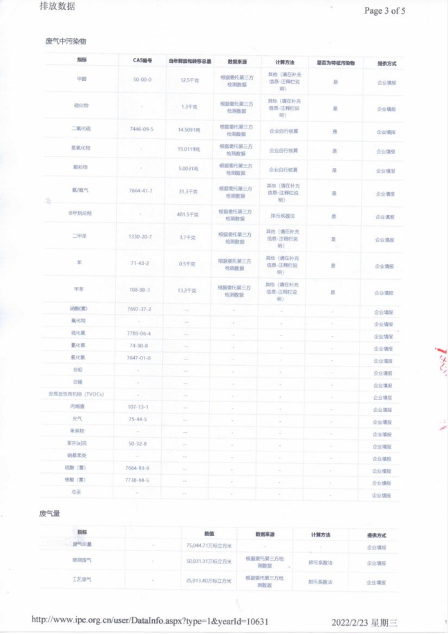 我司主动披露环境数据,2021年PRTR数据表已完成审核,您可通过以下链接查看数据表:http://www.ipe.org.cn/IndustryRecord/regulatory-record.aspx?companyId=11728181&dataType=3&selfdata=prtr-group&dataId=0&isyh=0
