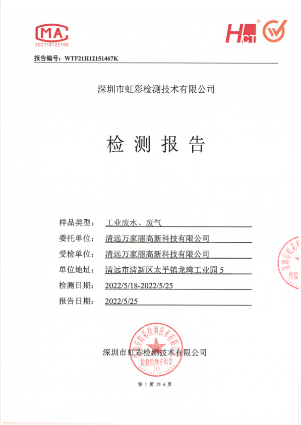 [下一篇] 清远万家丽高新科技有限公司2022年6月份废水、废气监测报告